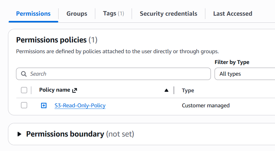 The IAM policy is useful to only assign S3 bucket list and get items permission to the newly created user. This way we are giving the IAM least access privileges.
